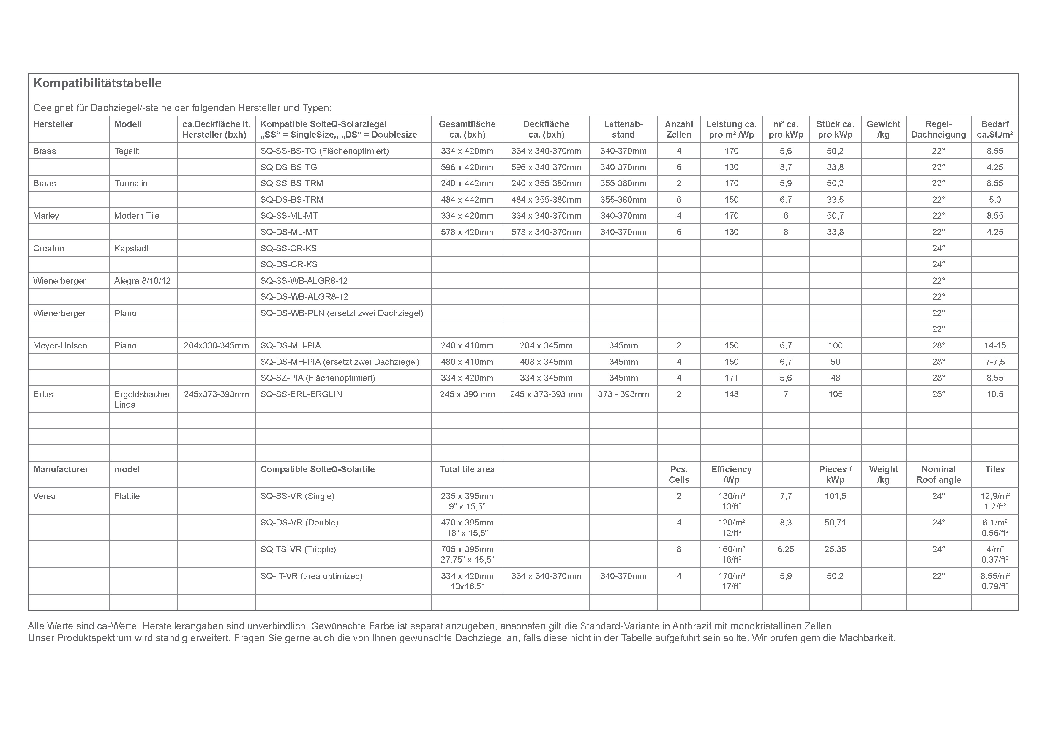 • Kombinierbar mit Dachziegeln oder Beton-Dachsteinen verschiedener Anbieter, lt. Kompatibilitätstabelle.